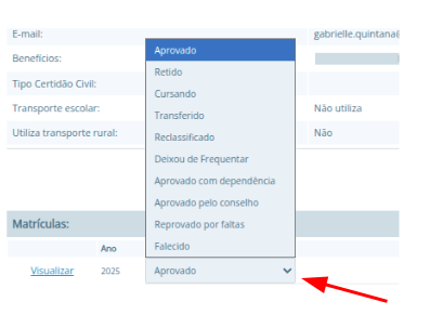 When an administrative user (with global or proper local permissions) accesses a student's record, the "Final Status" dropdown is visible and fully functional, allowing manual status updates.