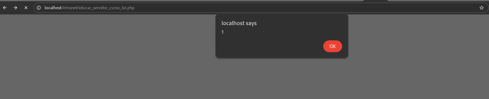 Depois disso, o XSS pode ser acionado abrindo o endpoint `educar_servidor_curso_lst.php` correspondente ao nome editado. ID.